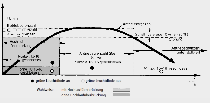 Schaltungsablauf des Drehzahlwächters EDO (Unterdrehzahlüberwachung)